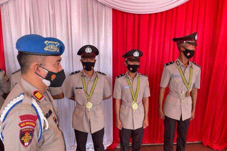 Kapolda Jambi Irjen Pol Albertus Rachmad Wibowo memimpin upacara penutupan pendidikan pembentukan dan pelantikan serta pengambilan sumpah 322 Bintara Polri tahun anggaran 2021 itu.