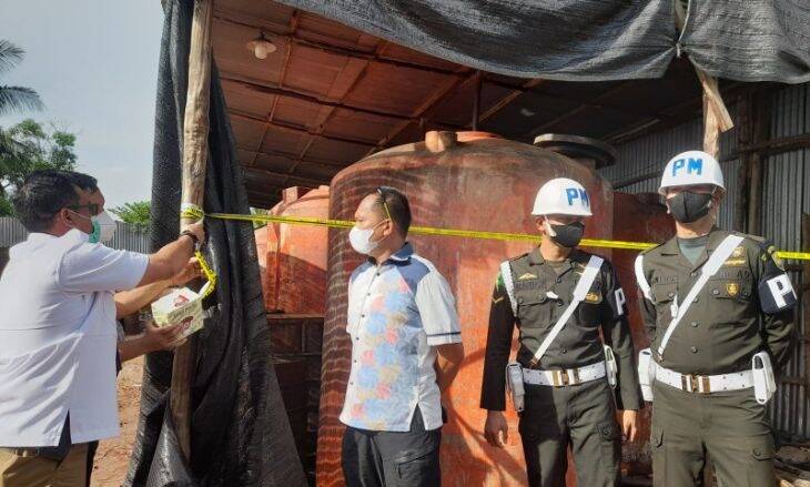 “Pemasangan garis polisi dilakukan di dalam gudang atau area yang terdapat ‘tedmon’ dan mesin yang ada,” kata dia.