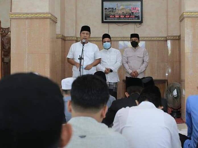 H. Romi Hariyanto dalam sambutannya mengucapkan selamat hari raya Idul Fitri 1443 H/2022. Dan atas nama pribadi dan seluruh jajaran Pemkab Tanjabtim mengucapkan Minal Aidin Wafaizin Mohon Maaf lahir dan batin.