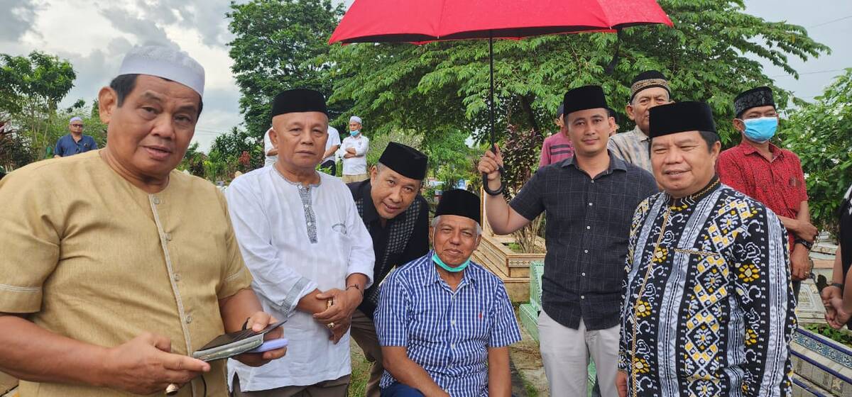 Jambi – Tokoh Jambi Usman Ermulan mengantarkan jenazah bekas Sekda Sarolangun H.M Basyari menuju tempat peristirahatan terakhir.