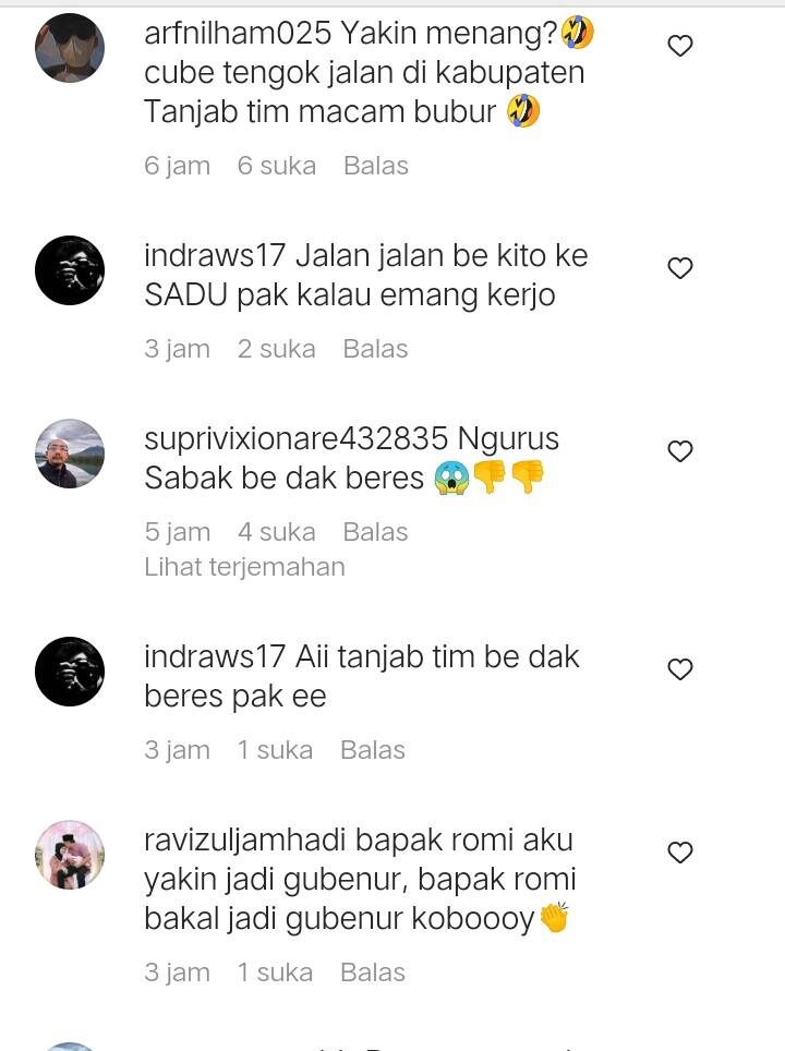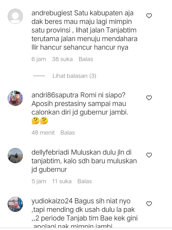 “Romi ni siapo? Aposih prestasiny sampai mau calonkan diri jd gubernur jambi.” ucap andri86saputra.