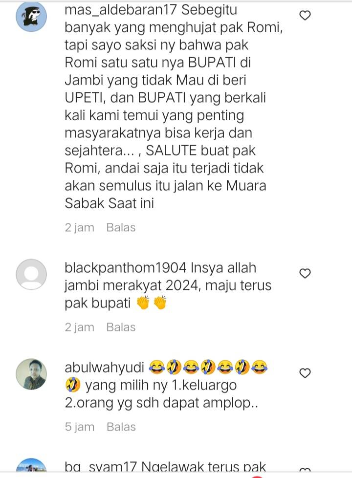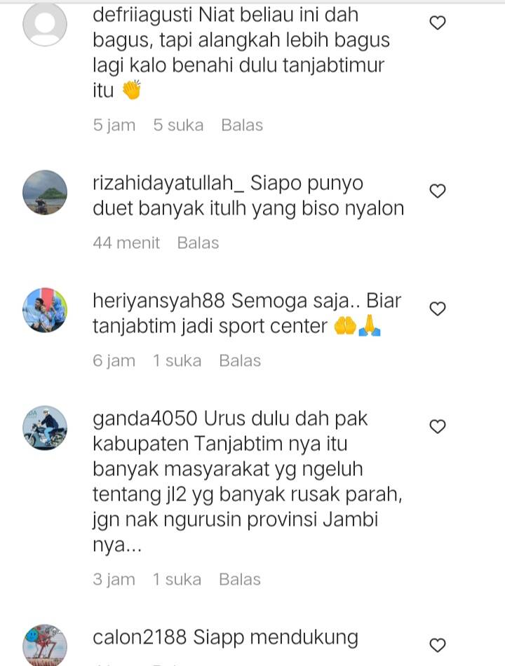 Bahkan ada yang mendukung langkah Romi, “Semoga saja.. Biar tanjabtim jadi sport center,” tulis heriyansyah88.