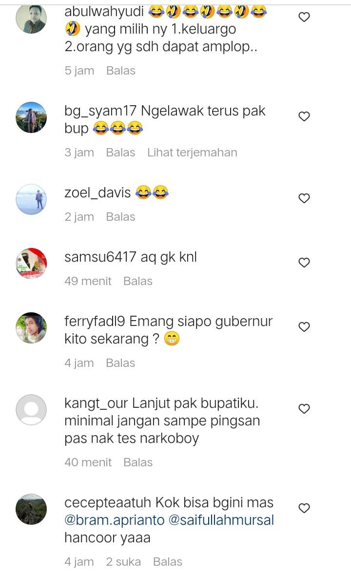 “Bagus sih niat nyo, tapi mending dk usah dulu la pak,, 2 periode Tanjab tim Bae kek gini apolagi nak mimpin jambi,” kata yudiokaizo24.