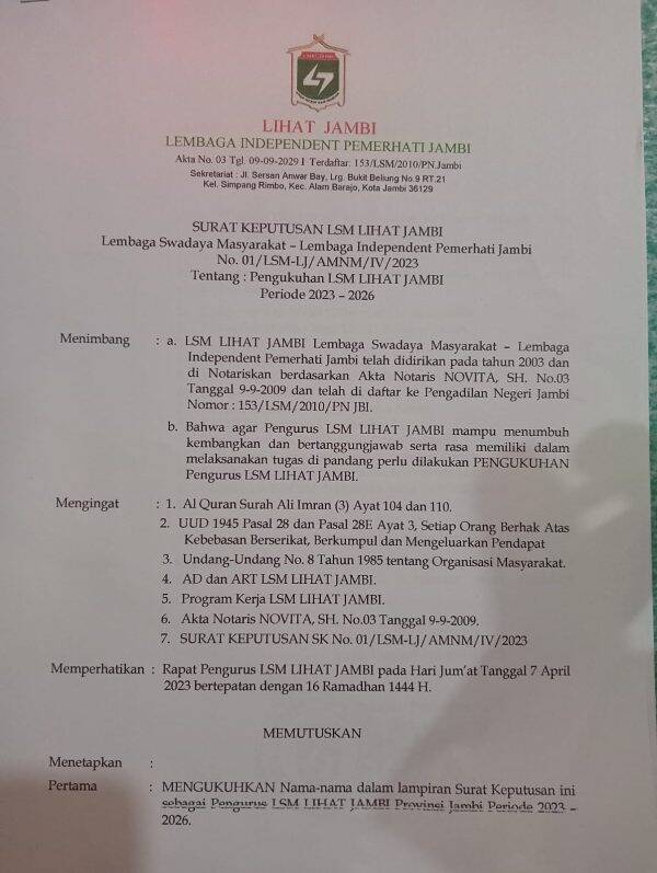 Jambi – Lembaga Independent Pemerhati atau Lihat Jambi yang pernah sangat aktif sejak tahun 2003 akan mendeklarasikan diri untuk kembali berkiprah setelah sekian lama vakum.