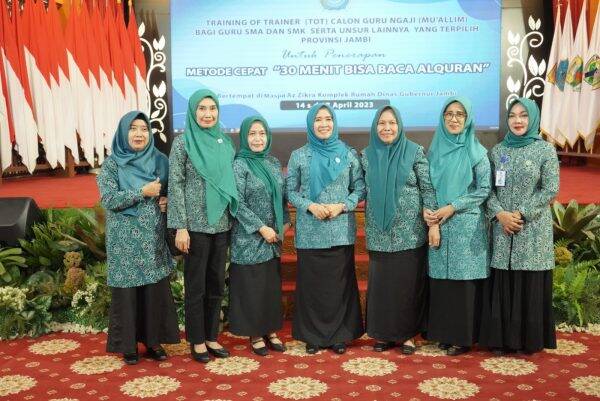 TP-PKK Provinsi Jambi menggelar kegiatan penerapan metode cepat 30 menit bisa membaca Al-Qur’an, jumat (14/04/2023) bertempat di rumah dinas Gubernur Jambi. Acara ini juga dihadiri oleh semua ketua TP-PKK se kabupaten/kota di provinsi jambi.