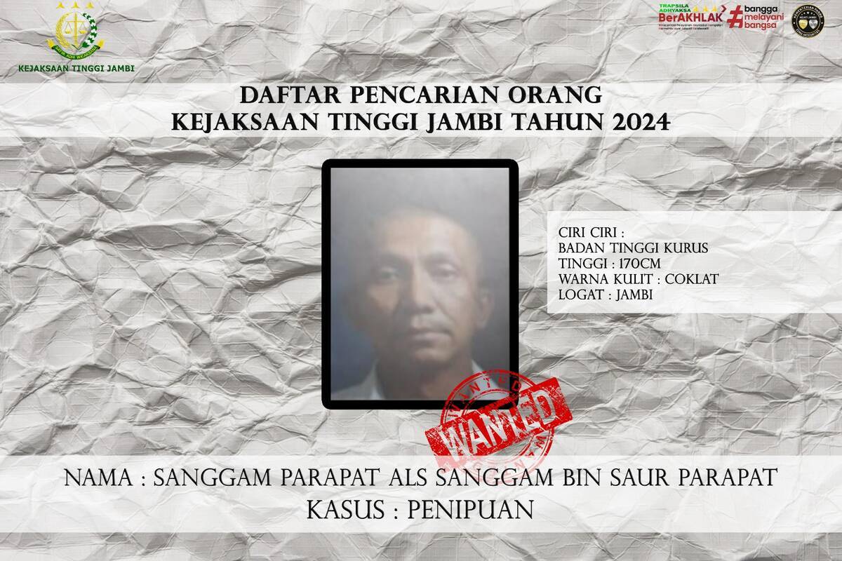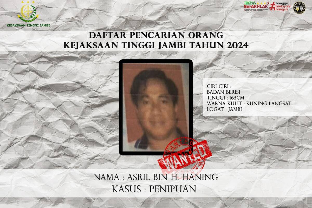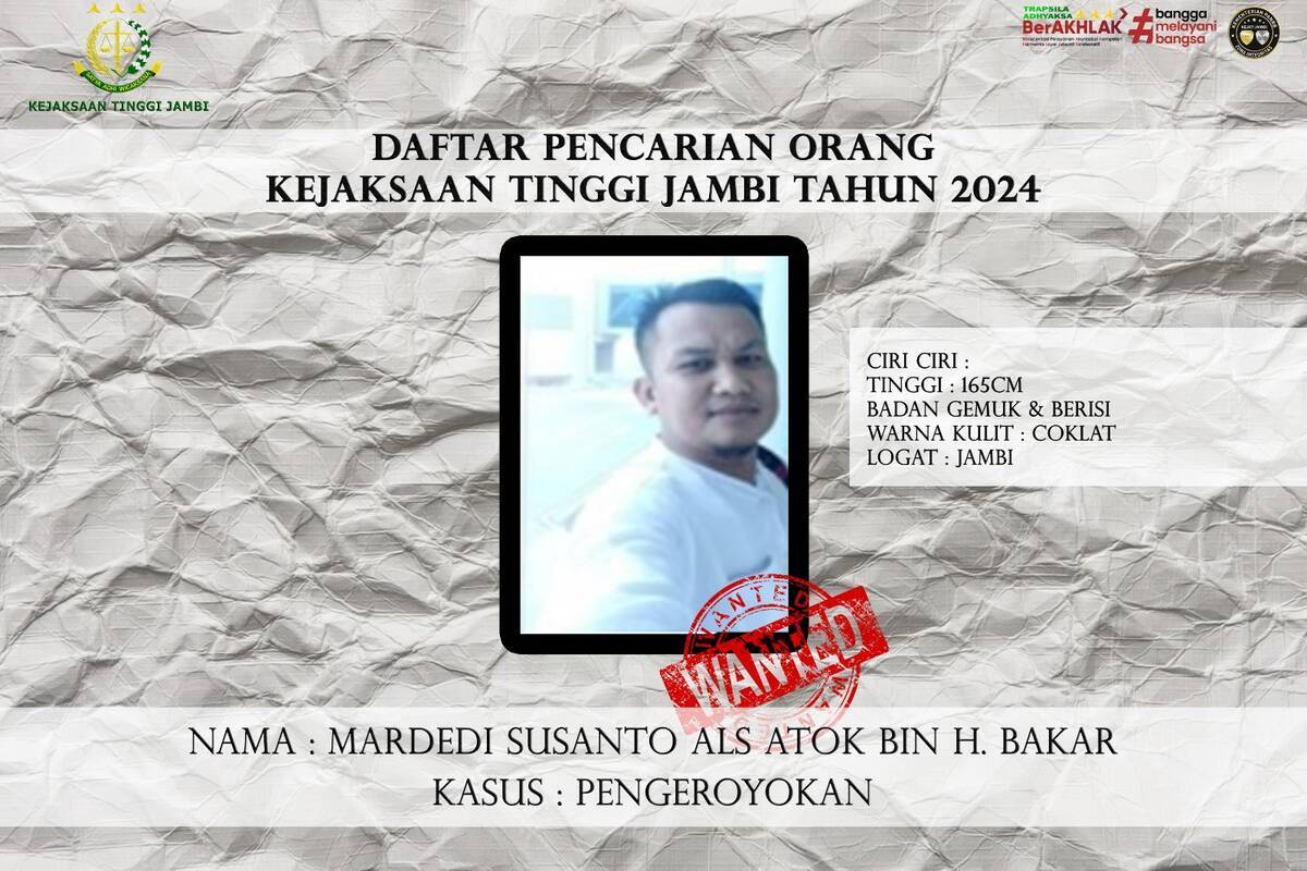 Jambi – Kejaksaan Tinggi (Kejati) Jambi masih memburu 8 orang yang masuk dalam Daftar Pencarian Orang (DPO).