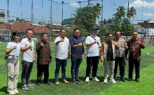 JAMBI – Launching Grand Opening gatsu sport center (GSC) ditandai dengan tendangan Finalty oleh Ketua Koni Provinsi Jambi Budi Setiawan, Kamis (25/7/24).