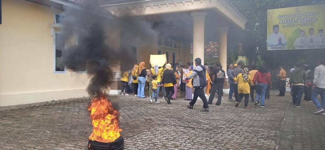 Massa Bakar Ban di Halaman Kantor Golkar Provinsi Jambi, Itu Gegara Maulana-Diza