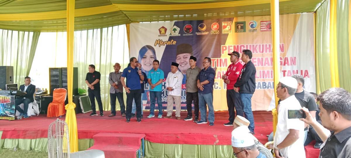 Sabak – Masyarakat Muarasabaktimur berbondong – bondong menghadiri pengukuhan tim pemenangan Hj Dillah Hikmah Sari – Muslimin Tanja di Kecamatan itu Sabtu pagi 21 September 2024. Massa memadati tenda – tenda yang disiapkan panitia di area koridor jembatan Muarsabak.