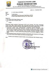 Demikian kami beritahukan kepada Saudara, atas perhatiannya kami haturkan terimakasih. Begitu bunyi surat yang diteken langsung oleh Kadinkes provinsi Jambi dr Fery Kusnadi, tertanggal 31 Desember 2024.