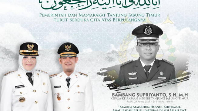 Jambi – Kabar duka menyelimuti Kabupaten Tanjung Jabung Timur. Kepala Kejaksaan Negeri, Bambang Supriyanto SH MH berpulang ke haribaan Tuhan Yang Maha Esa pada Rabu 23 April 2025 di Jogyakarta.