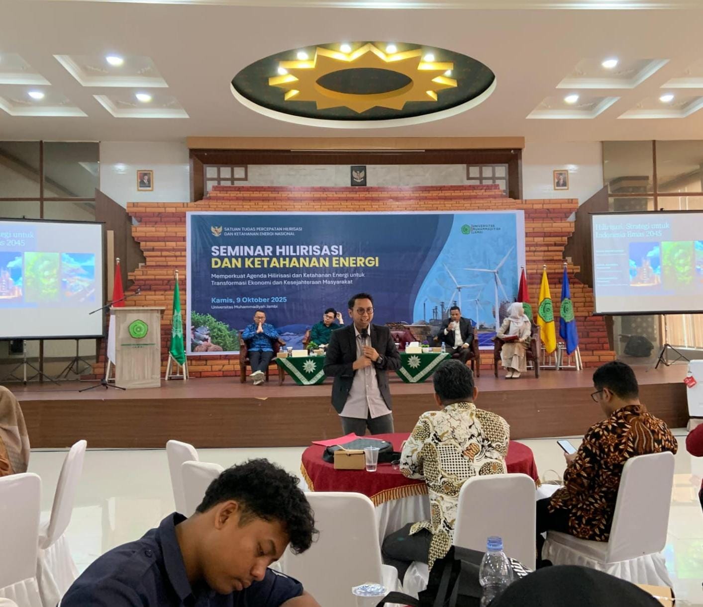 Jambi – Universitas Muhammadiyah Jambi (UM Jambi) menggelar Seminar Hilirisasi dan Ketahanan Energi bekerja sama dengan Satuan Tugas Percepatan Hilirisasi dan Ketahanan Energi Nasional (PHKE) Kementerian Energi dan Sumber Daya Mineral (KESDM), Kamis (9/10/2025), bertempat di Auditorium UM Jambi.