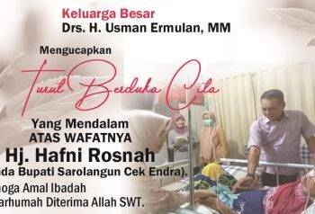 JAMBI, AP - Mantan Bupati Tanjung Jabung Barat Usman Ermulan mengucapkan belasungkawa atas meninggalnya Ibunda Bupati Sarolangun Cek Endra. "Innalillahi...
